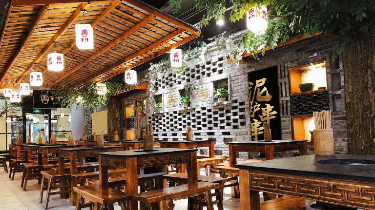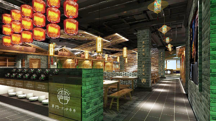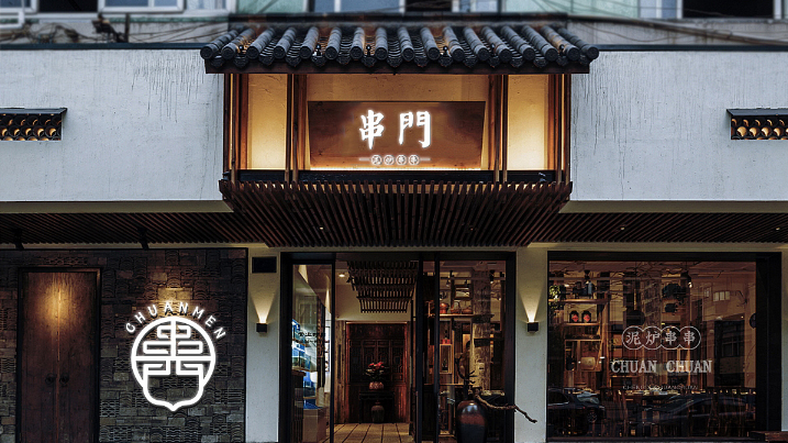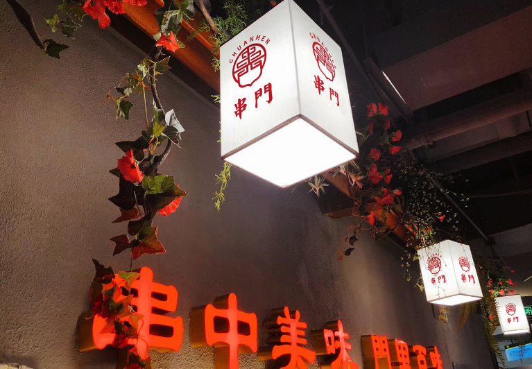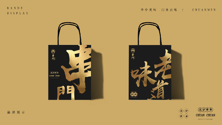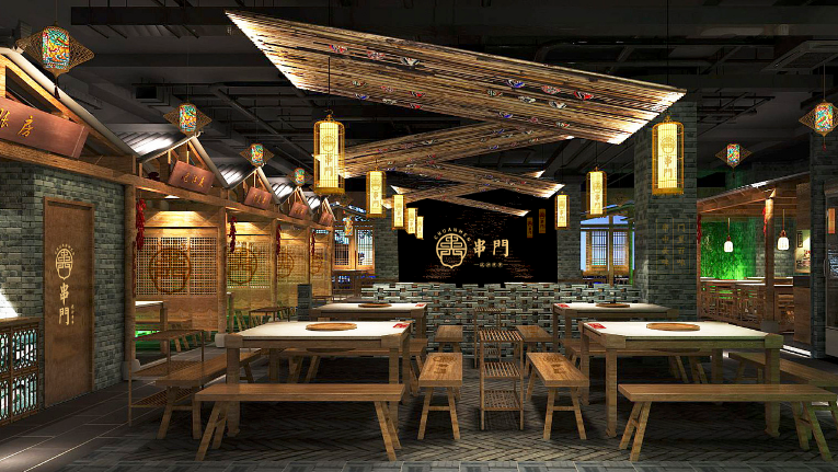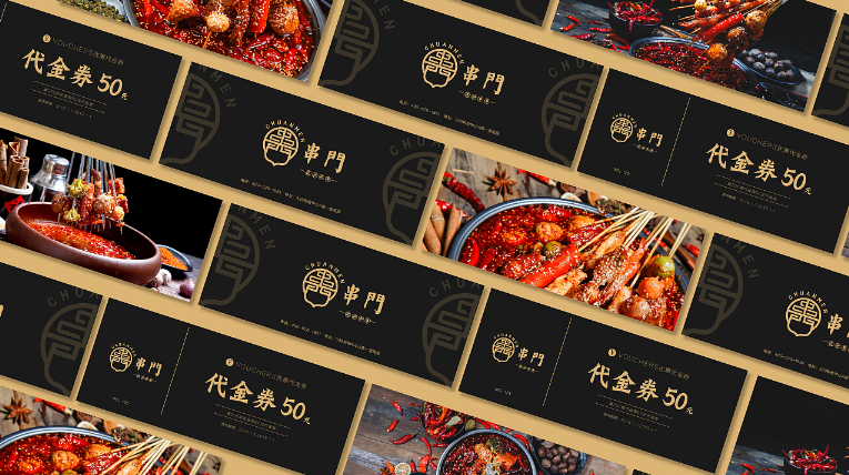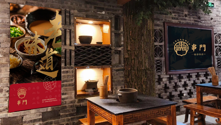 串门串串香作为成都又一老牌串串香,使用泥炉作为容器,返璞归真,泥炉串串能起到很好的保温效果,串门串串香一直用全牛油。本次客户为打造品牌形象店,委托成都魔立方进行餐饮品牌VI及空间升级+品牌形象店选址。因为是旗舰店,必须要串门串串原有文化气息还需要有旗舰店的风采,所以我们所有的设计以黑、金为主。旗舰店坐落于339商业圈,黑、金为主的设计必定会增加很多闪光点。